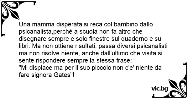 Una mamma disperata si reca col bambino dallo psicanalista,perché a scuola non fa altro che disegnare sempre e solo finestre sul quaderno e sui libri. Ma non ottiene risultati, passa diversi psicanalisti ma non risolve niente, anche dall'ultimo che visita si sente rispondere sempre la stessa frase: