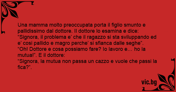 “Signora, il problema e’ che il ragazzo si sta sviluppando ed e’ cosi pallido e magro perche’ si sfianca dalle sеghе”.