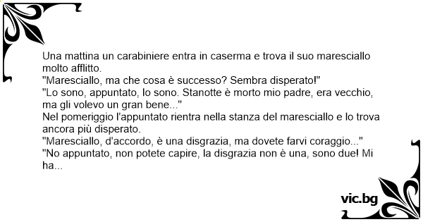 Una mattina un carabiniere entra in caserma e trova il suo maresciallo molto afflitto.