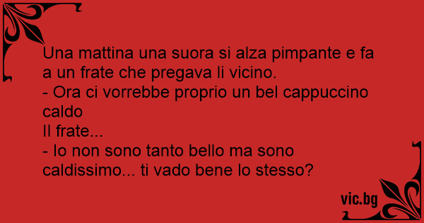 Una mattina una suora si alza pimpante e fa a un frate che pregava li vicino.