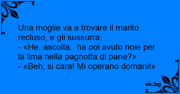 Una moglie va a trovare il marito recluso, e gli sussurra: