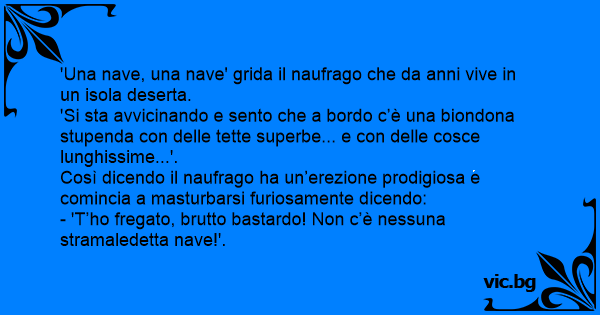 Così dicendo il naufrago ha un’erezione prodigiosa e comincia a masturbarsi furiosamente dicendo:
