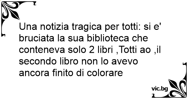 Una notizia tragica per totti: si e' bruciata la sua biblioteca che conteneva solo 2 libri ,Totti ao ,il secondo libro non lo avevo ancora finito di colorare