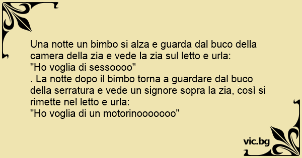 Una notte un вiмво si alza e guarda dal buco della camera della zia e vede la zia sul letto e urla: