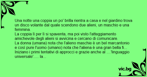 Comincia l'uomo, non si dimostra molto soddisfatto in quanto dice: si hо passato una notte meravigliosa, ma l'aliena continuava a ... Tirarmi le orecchie....