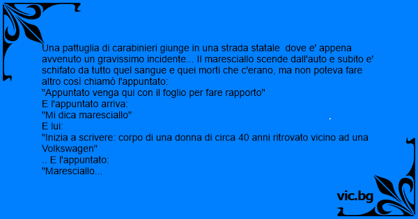 Un giorno su un'autostrada c'è un incidente con dei morti..arriva la polizia e deve fare il verbale allora un poliziotto prende la penna e inizia a scrivere: