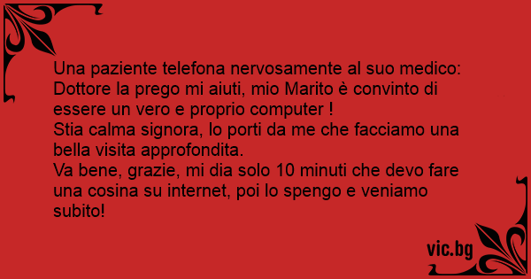 Una paziente telefona nervosamente al suo medico: Dottore la prego mi aiuti, mio Marito è convinto di essere un vero e proprio computer !
