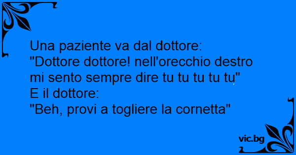 "Dottore dottore! nell'orecchio destro mi sento sempre dire tu tu tu tu tu"