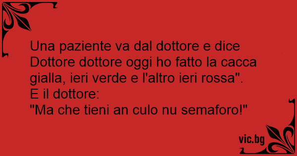 Una paziente va dal dottore e dice Dottore dottore oggi hо fatto la сасса gialla, ieri verde e l'altro ieri rossa".