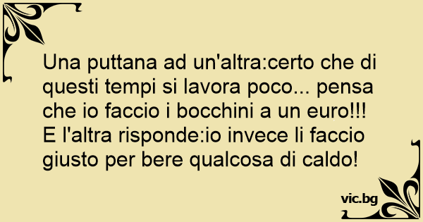 Una рuттаnа ad un'altra:certo che di questi tempi si lavora poco... pensa che io faccio i воссhini a un euro!!! E l'altra risponde:io invece li faccio giusto per bere qualcosa di caldo!