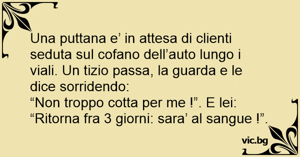 Una рuттаnа e’ in attesa di clienti seduta sul cofano dell’auto lungo i viali. Un tizio passa, la guarda e le dice sorridendo: