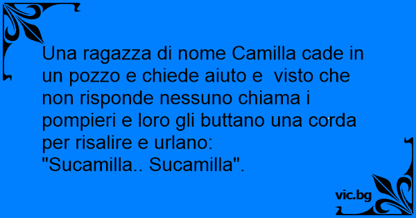 Una ragazza di nome Camilla cade in un pozzo e chiede aiuto e visto che non risponde nessuno chiama i pompieri e loro gli buttano una corda per risalire e urlano: