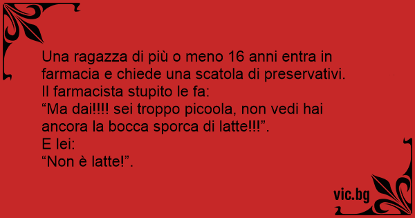 Una ragazza di più o meno 16 anni entra in farmacia e chiede una scatola di preservativi.