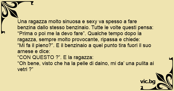 “Mi fa il pieno?”. E il benzinaio a quel punto tira fuori il suo arnese e dice: