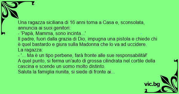18 годишно италианско момиче казало на майка си, че вече 2 месеца няма цикъл. Много притеснена майката отишла до близката дрогерия и купила тест за бременност. Резултата показал, че девойката е бременна. Псувайки и плачейки майката попитала: 'Коя е...