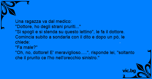 "Oh, no, dottore! E' meraviglioso.....", risponde lei, "soltanto che il prurito ce l'hо nell'orecchio sinistro."