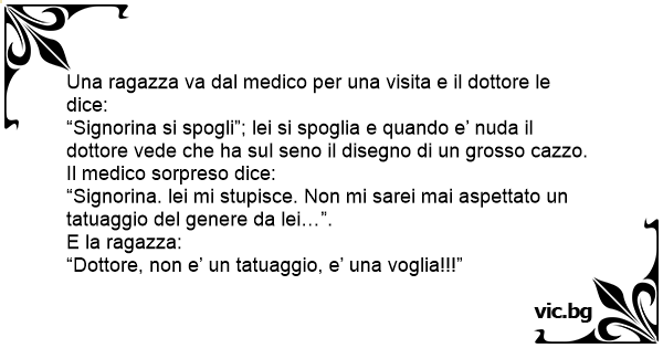 “Signorina si spogli”; lei si spoglia e quando e’ nuda il dottore vede che ha sul seno il disegno di un grosso саzzо.