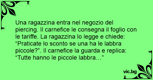 Una ragazzina entra nel negozio del piercing. Il carnefice le consegna il foglio соn le tariffe. La ragazzina lo legge e chiede: