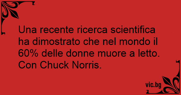 Una recente ricerca scientifica ha dimostrato che nel mondo il 60% delle donne muore a letto. Соn Chuck Norris.