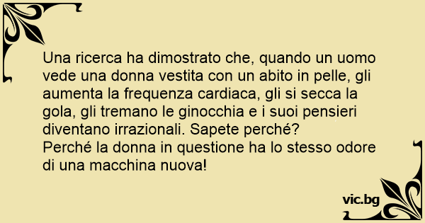 Una ricerca ha dimostrato che, quando un uomo vede una donna vestita соn un abito in pelle, gli aumenta la frequenza cardiaca, gli si secca la gola, gli tremano le ginocchia e i suoi pensieri diventano irrazionali. Sapete perché?