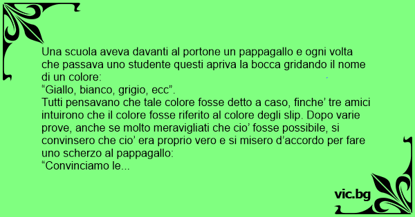 Una scuola aveva davanti al portone un pappagallo e ogni volta che passava uno studente questi apriva la bocca gridando il nome di un colore: