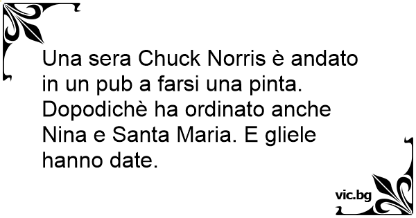 Una sera Chuck Norris è andato in un pub a farsi una pinta. Dopodichè ha ordinato anche Nina e Santa Maria. E gliele hanno date.