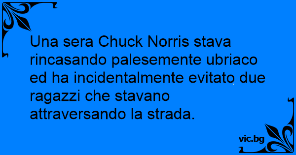 Una sera Chuck Norris stava rincasando palesemente ubriaco ed ha incidentalmente evitato due ragazzi che stavano attraversando la strada.