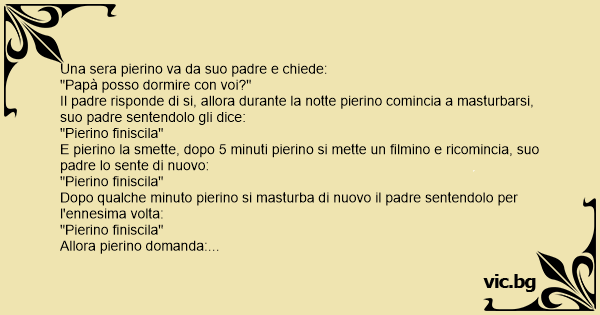 Il padre risponde di si, allora durante la notte pierino comincia a masturbarsi, suo padre sentendolo gli dice:
