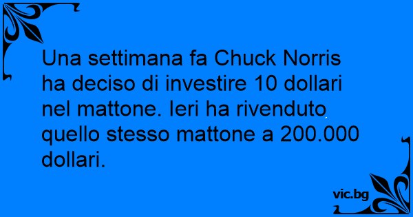 Una settimana fa Chuck Norris ha deciso di investire 10 dollari nel mattone. Ieri ha rivenduto quello stesso mattone a 200.000 dollari.