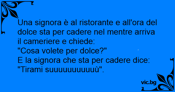 Una signora è al ristorante e all'ora del dolce sta per cadere nel mentre arriva il cameriere e chiede: