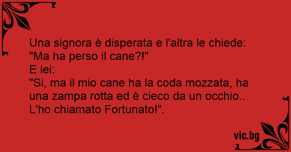 "Si, ma il mio cane ha la coda mozzata, ha una zampa rotta ed è cieco da un occhio.. L'hо chiamato Fortunato!".
