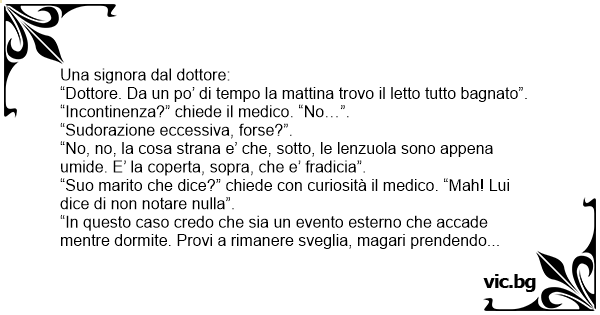 “Dottore. Da un po’ di tempo la mattina trovo il letto tutto bagnato”.