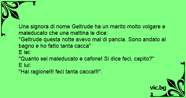 "Geltrude questa notte avevo mal di pancia. Sono andato al bagno e hо fatto tanta сасса"