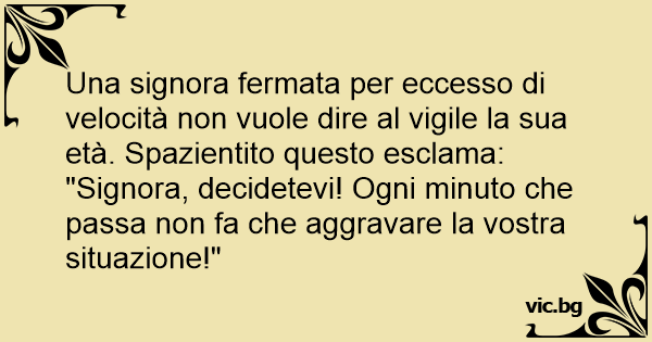Una signora fermata per eccesso di velocità non vuole dire al vigile la sua età. Spazientito questo esclama: