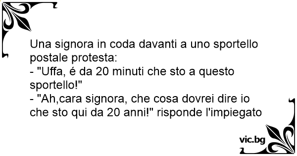 - "Ah,cara signora, che cosa dovrei dire io che sto qui da 20 anni!" risponde l'impiegato