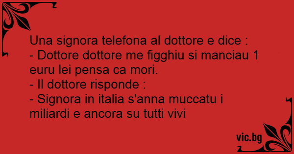 - Dottore dottore me figghiu si manciau 1 euru lei pensa ca mori.