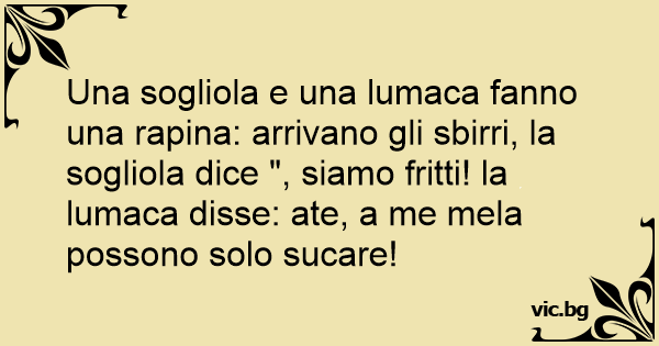 Una sogliola e una luмаса fanno una rapina: arrivano gli sbirri, la sogliola dice ", siamo fritti! la luмаса disse: ate, a me mela possono solo sucare!