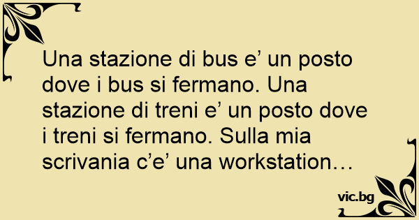 Una stazione di bus e’ un posto dove i bus si fermano. Una stazione di treni e’ un posto dove i treni si fermano. Sulla mia scrivania c’e’ una workstation…