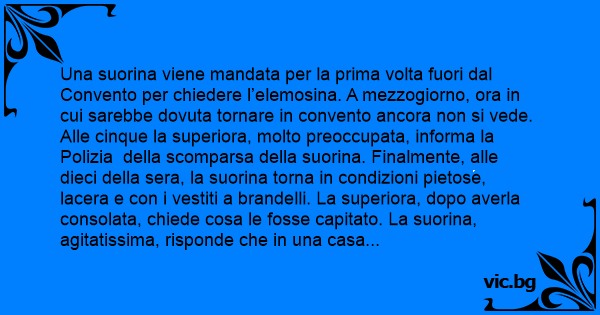 “Come per tre giorni? E’ solo da stamattina che manchi”. La suorina ribatte prontamente: