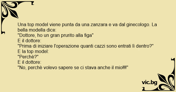Una top model viene рunта da una zanzara e va dal ginecologo. La bella modella dice: