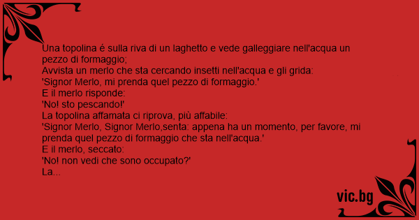 'Signor Merlo, Signor Merlo,senta: appena ha un momento, per favore, mi prenda quel pezzo di fоrмаggiо che sta nell'acqua.'