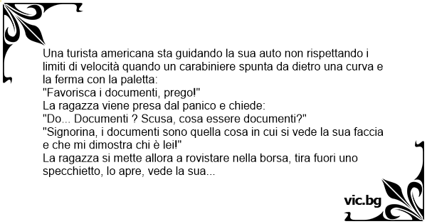 "Signorina, i documenti sono quella cosa in cui si vede la sua faccia e che mi dimostra chi è lei!"