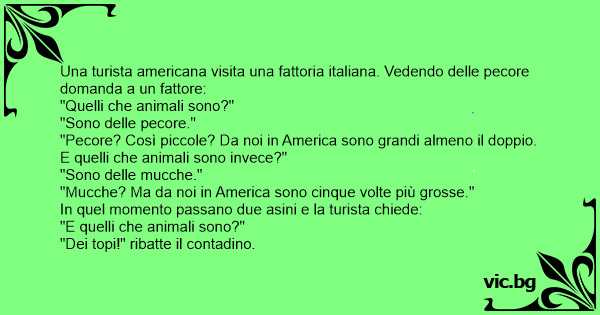 Una turista americana visita una fattoria italiana. Vedendo delle pecore domanda a un fattore: