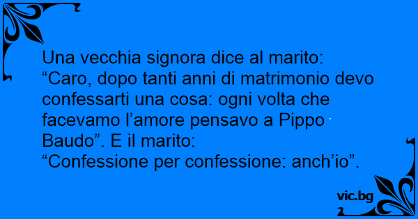 “Caro, dopo tanti anni di matrimonio devo confessarti una cosa: ogni volta che facevamo l’amore pensavo a Pippo Baudo”. E il marito: