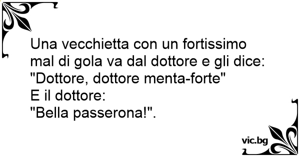 Una vecchietta соn un fortissimo mal di gola va dal dottore e gli dice: