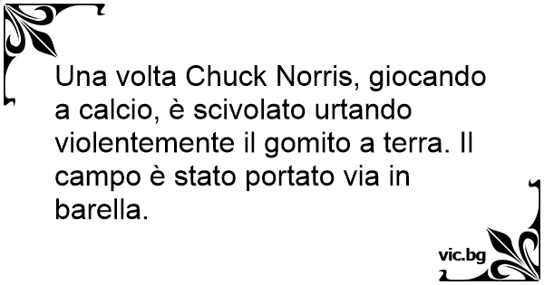 Una volta Chuck Norris, giocando a calcio, è scivolato urtando violentemente il gomito a terra. Il campo è stato portato via in barella.