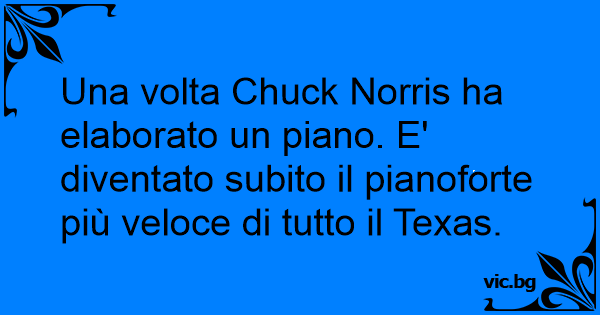 Una volta Chuck Norris ha elaborato un piano. E' diventato subito il pianoforte più veloce di tutto il Texas.