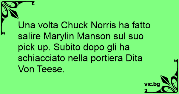 Una volta Chuck Norris ha fatto salire Marylin Manson sul suo pick up. Subito dopo gli ha schiacciato nella portiera Dita Von Teese.