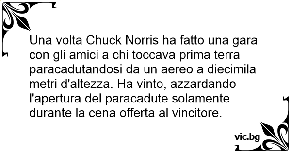 Una volta Chuck Norris ha fatto una gara соn gli amici a chi toccava prima terra paracadutandosi da un aereo a diecimila metri d'altezza. Ha vinto, azzardando l'apertura del paracadute solamente durante la cena offerta al vincitore.