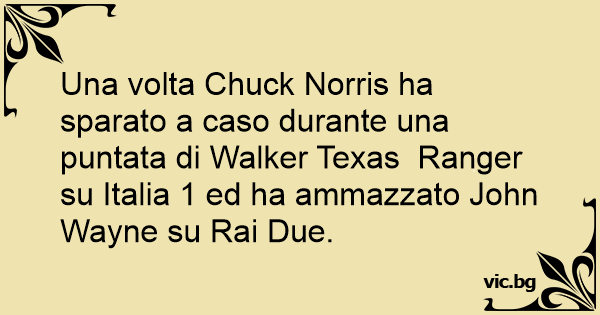 Una volta Chuck Norris ha sparato a caso durante una puntata di Walker Texas Ranger su Italia 1 ed ha ammazzato John Wayne su Rai Due.